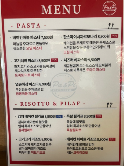 학원가 외곽쪽에 있는 피앤피파스타하우스는 가성비 좋은 파스타 맛집입니다. 이 라인의 음식점들이 그렇듯 매장이 넓지는 않지만 예쁜 인테리어와 합리적인 가격으로 인기가 많은 맛집이라 할 수 있겠습니다! 이 라인에 화룡짬뽕과 얼룩말 식당, 피앤피파스타하우스 세 집이 붙어있는데요, 이 세 집 모두 인기가 많은 맛집들입니다. 하여튼 파스타 하우스는 근방에 사는 분들에게 꽤 유명한 맛집인데요. 다른 분들 포스팅에서도 알 수 있듯이 가성비는 꼭 붙는 키워드입니다! 가성비 좋고 미국 감성으로 파스타와 피자를 즐길 수 있는 피앤피파스타하우스 꼭 한 번 방문해보세요!